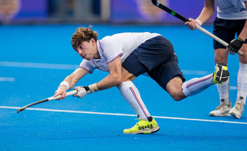 Avec un esprit de revanche, la France, vice-championne du monde, se souvient de la finale de la Coupe du monde junior il y a deux ans face à son bourreau. Les Français adoptent un pressing intense sur les Allemands, ce qui les force à faire des passes aléatoires. Ces récupérations permettent aux Bleuets de faire des percées et de se placer derrière la défense adverse. Si les attaquants français enchainent les offensives, la défense allemande montre sa solidité avec ses replis défensifs rapides. La tension est palpable à chaque décision arbitrale. Si la France obtient un Penalty-Corner (PC), ce dernier est tiré dans l’axe du but, ce qui permet au gardien de stopper facilement le tir.